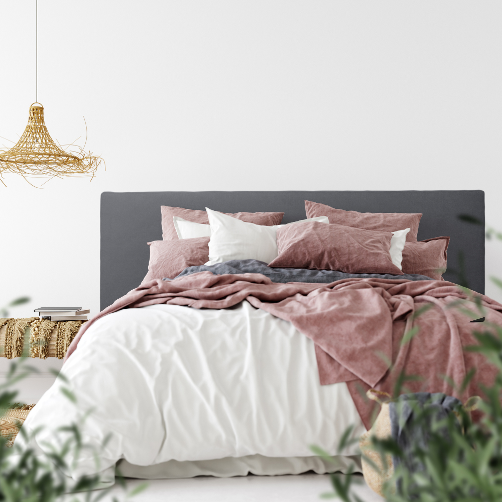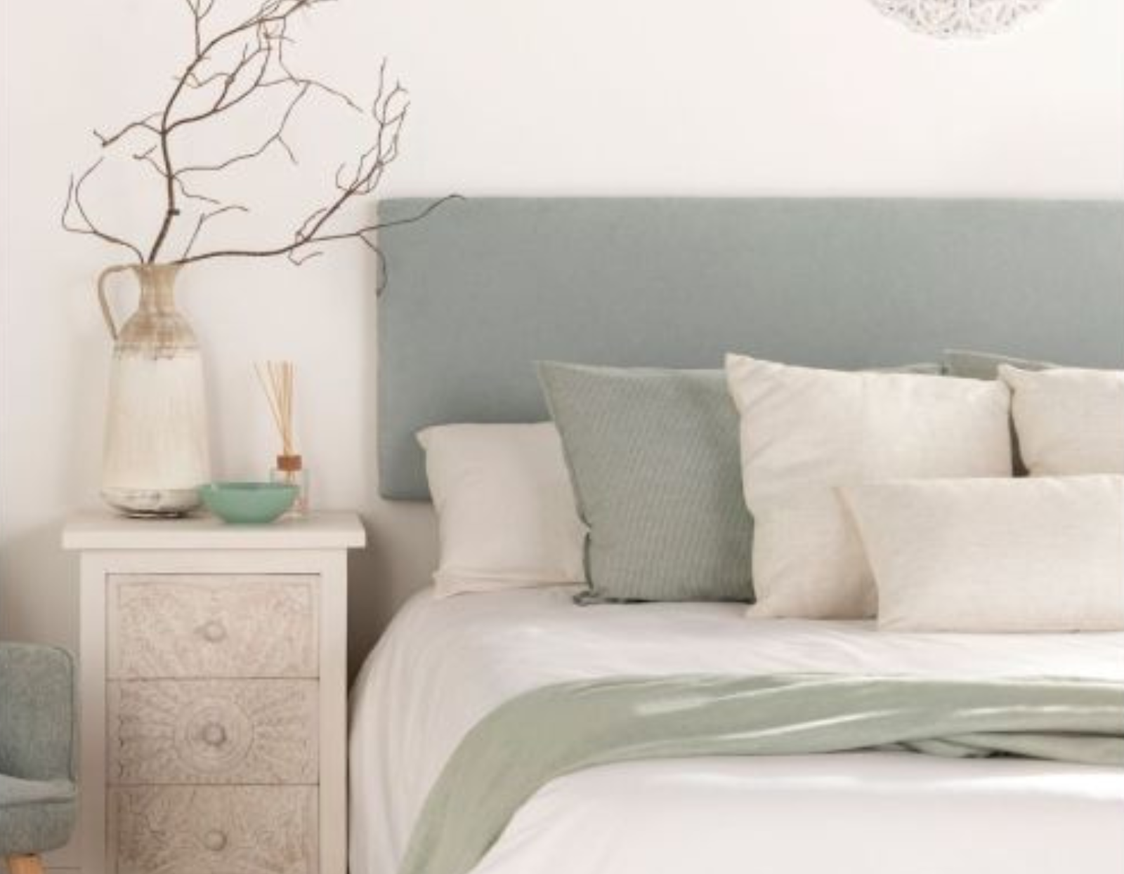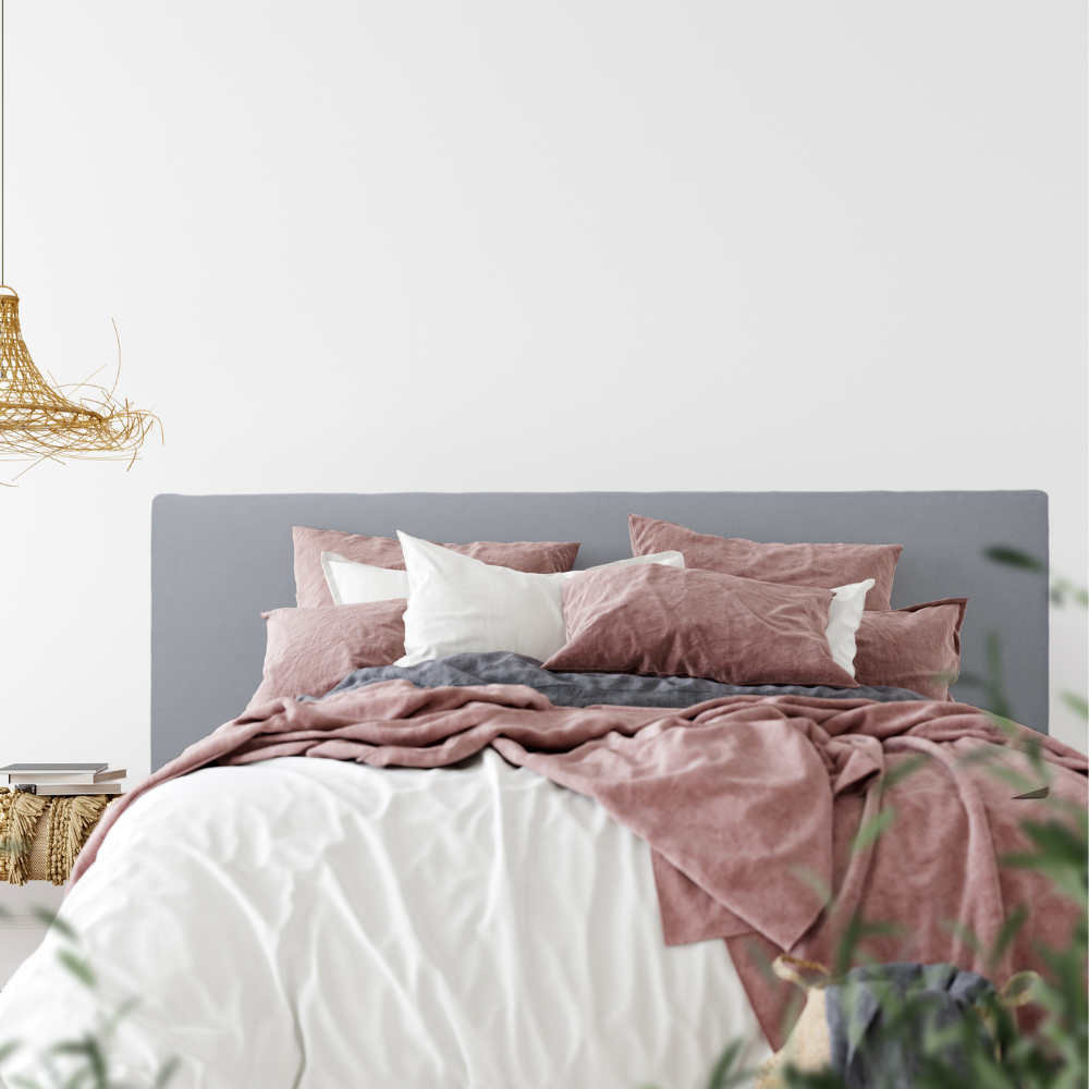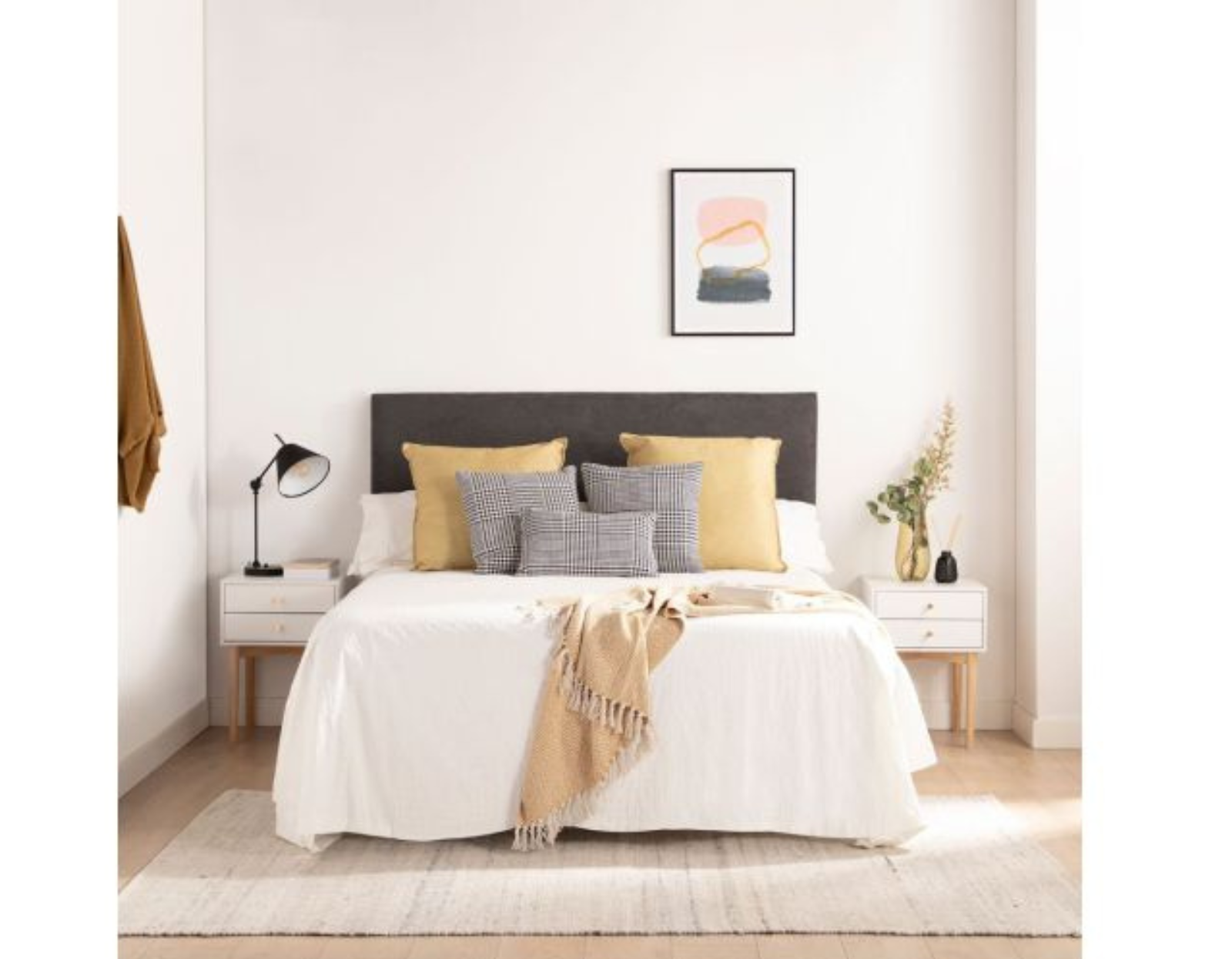 El montaje de un cabecero anclado en la pared es muy sencillo. Además, al ser un cabecero tapizado en tela podrás elegir cualquier mobiliario para el dormitorio y elegir los textiles para un juego único.