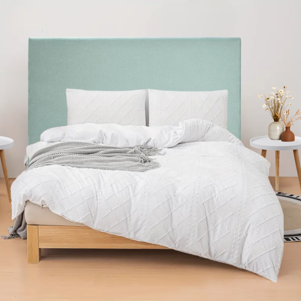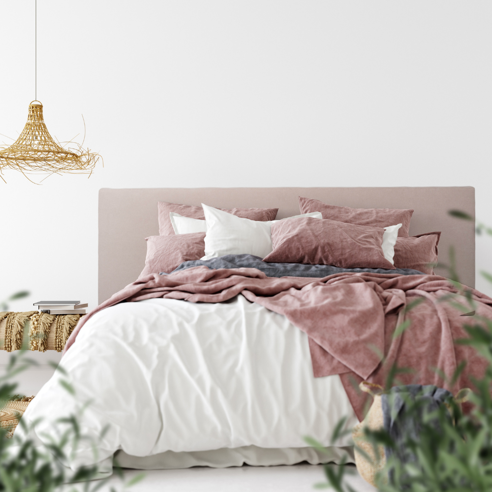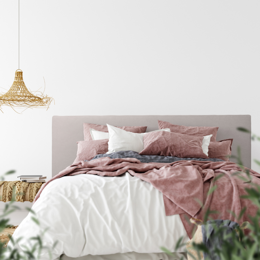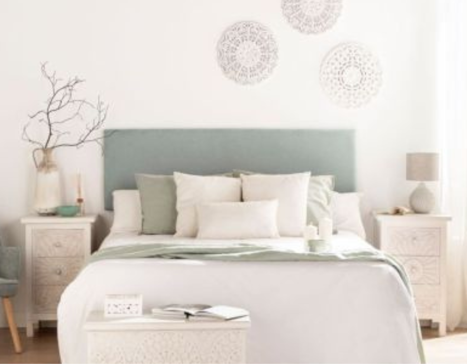 El montaje de un cabecero anclado en la pared es muy sencillo. Además, al ser un cabecero tapizado en tela podrás elegir cualquier mobiliario para el dormitorio y elegir los textiles para un juego único.