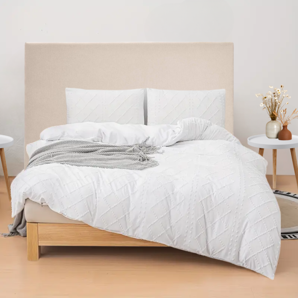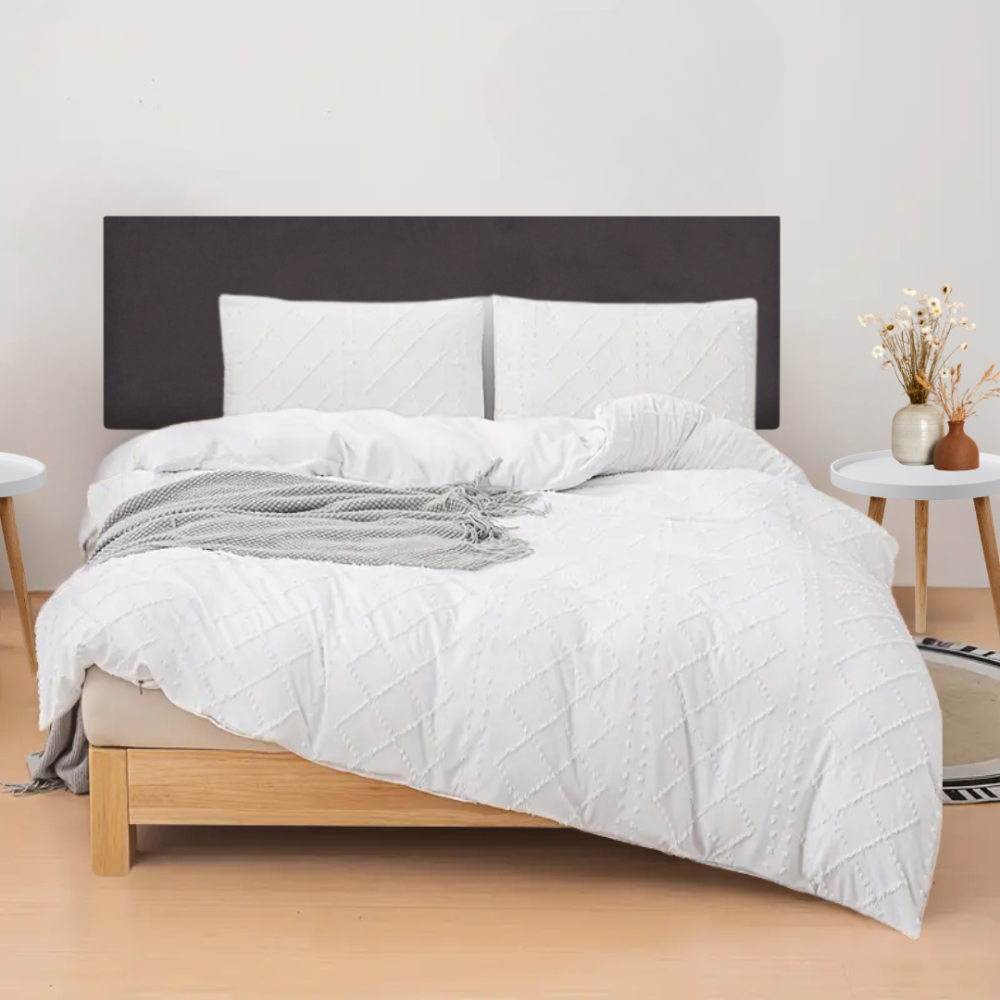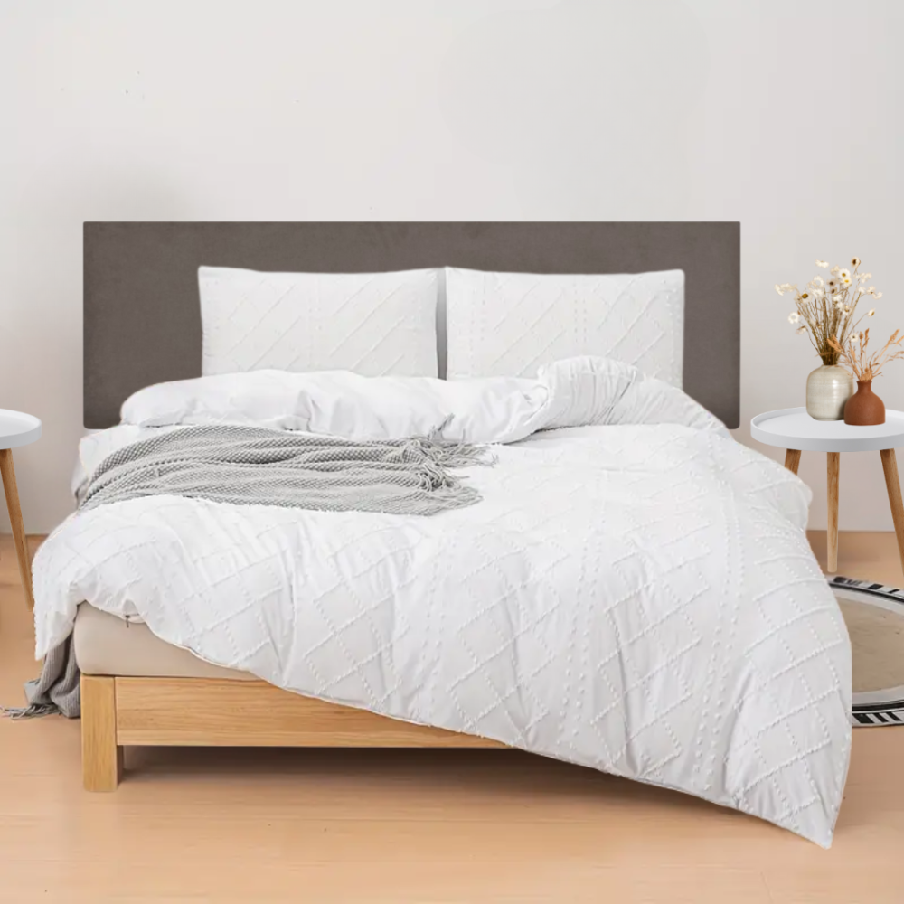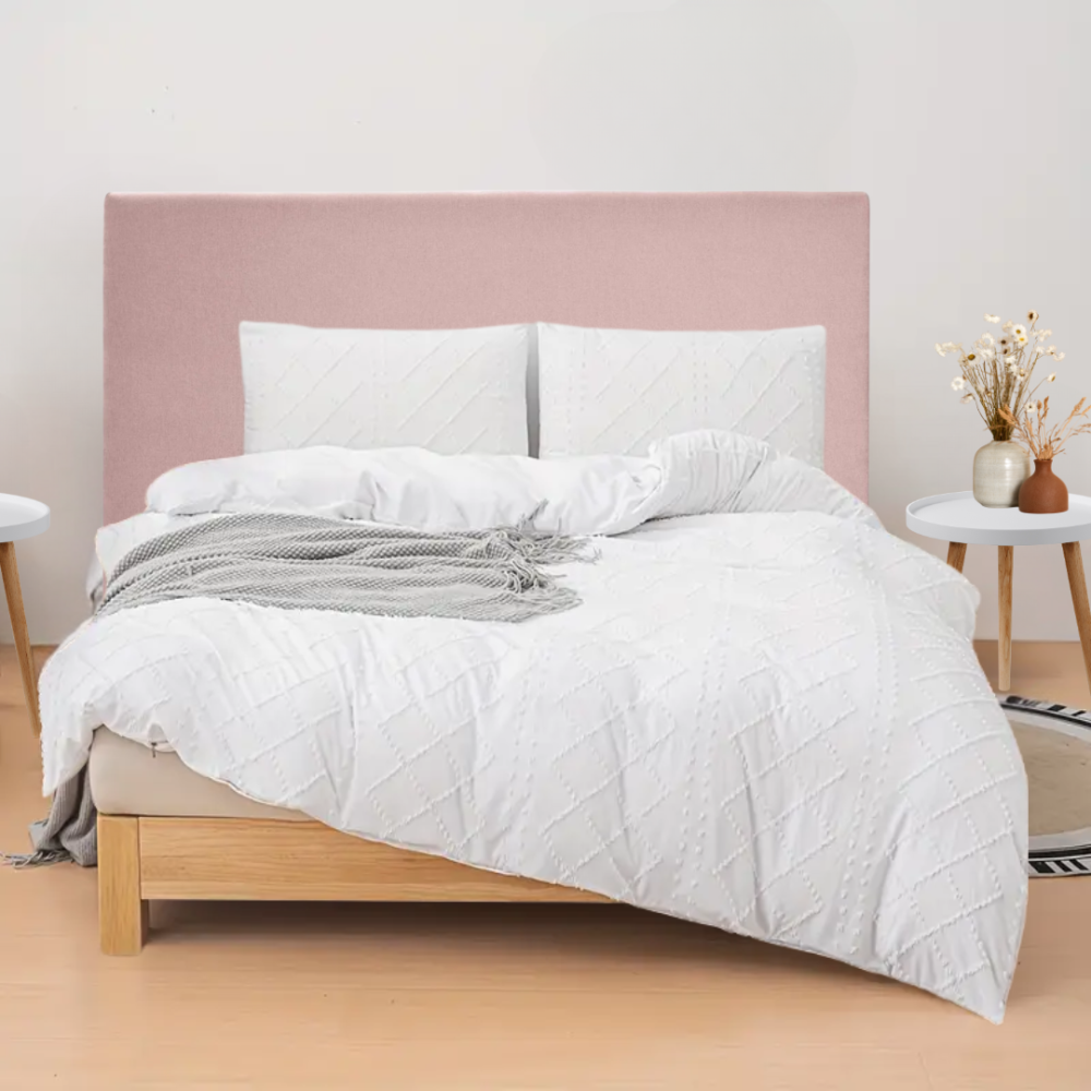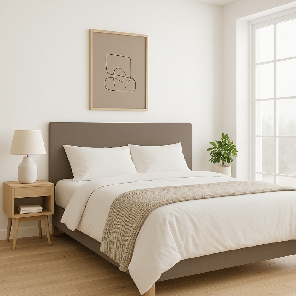 El montaje de un cabecero anclado en la pared es muy sencillo. Además, al ser un cabecero tapizado en tela podrás elegir cualquier mobiliario para el dormitorio y elegir los textiles para un juego único.